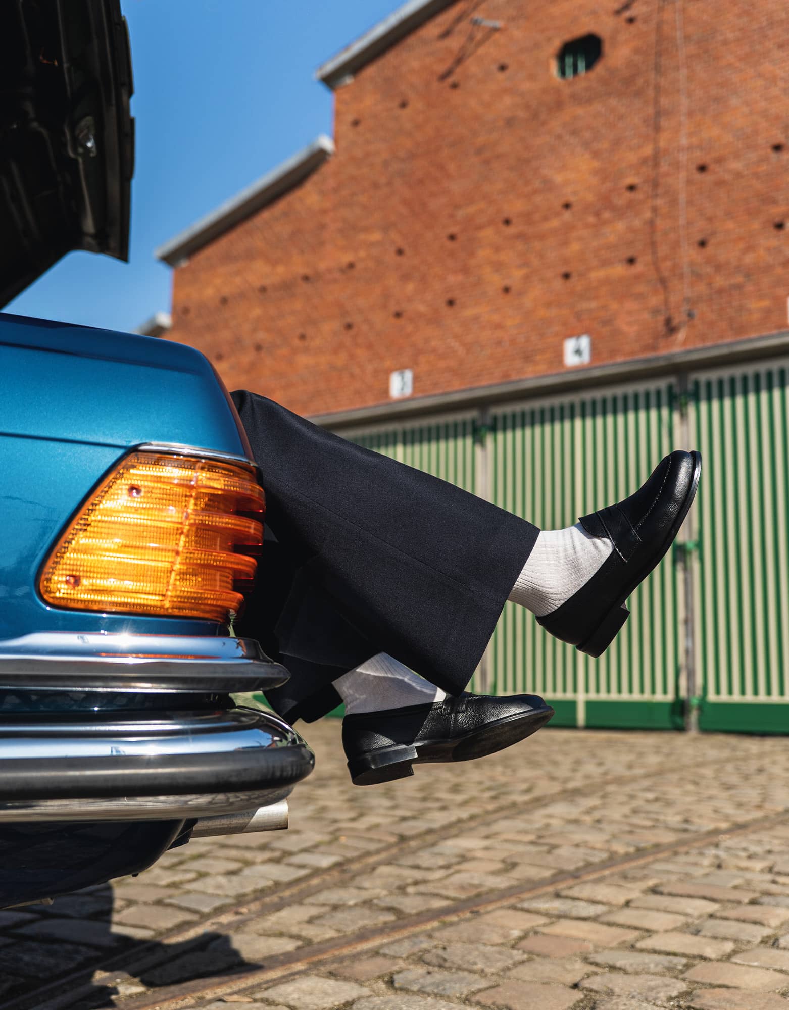 Doskonale prezentują się z granatem, szarością i czernią, ale równie dobrze współgrają z jaśniejszymi elementami garderoby, tworząc wyrazisty kontrast. Można je nosić z chinosami, dobrze skrojonymi jeansami czy spodniami z lekkiej wełny. W cieplejszych miesiącach świetnie wyglądają z koszulą i lekką marynarką, a w chłodniejszych — z dzianiną lub bardziej strukturalną marynarką.